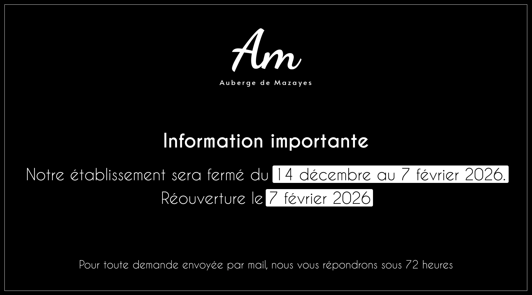 Situé au cœur du Puy de Sancy, Am Auberge de Mazayes est un lieu propice à la détente. Nous avons aménagé une ferme authentique en pierre pour créer un lieu unique où vous pouvez vous retrouver en famille ou entre amis pour un séjour inoubliable. Alliant charme rustique et modernité, votre auberge dispose de toutes les commodités indispensables pour garantir votre confort.